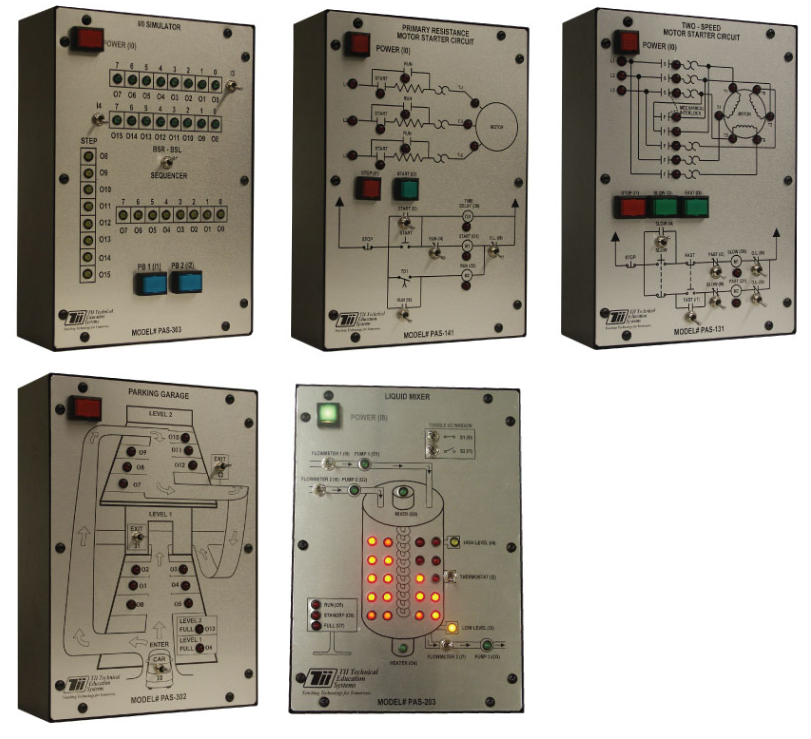 Alih-alih menggunakan simulasi komputer atau model mahal untuk meniru proses dunia nyata, TII telah menciptakan versi perangkat keras miniatur untuk mereplikasi fungsi kontrol proses beserta representasi grafis dari proses tersebut. Setiap modul dirancang untuk mereplikasi satu proses tunggal. Pendekatan ini memungkinkan siswa untuk benar-benar menghubungkan dan mengontrol I/O PLC serta memantau interaksi proses PLC secara visual.